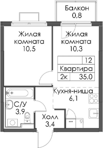• Площадь35 м2