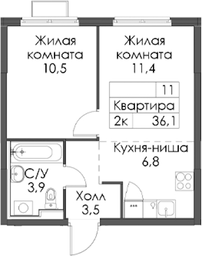 - Площадь36,1 м2