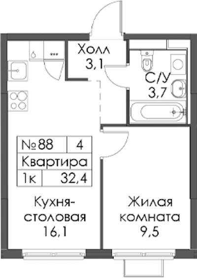 - Площадь32,4 м2
