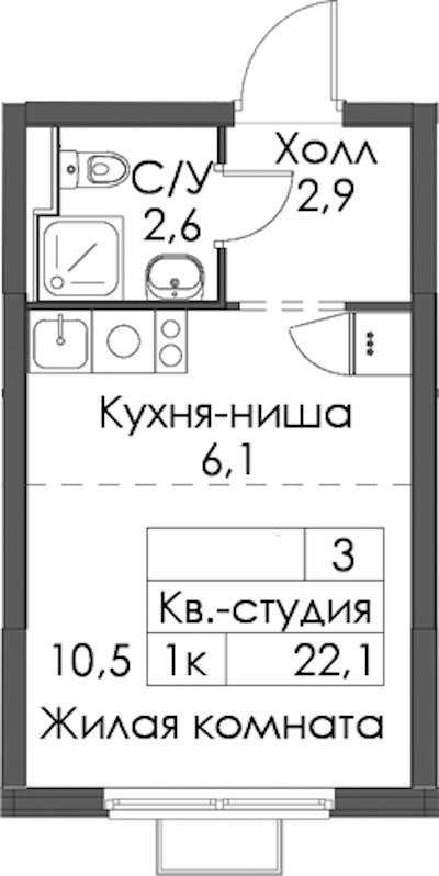 • Площадь22,1 м2