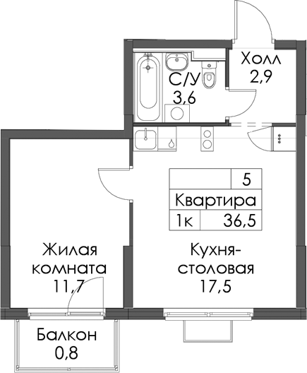 • Площадь36,5 м2