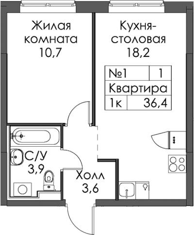 - Площадь36,4 м2