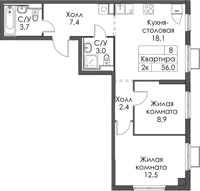 • Площадь56 м2