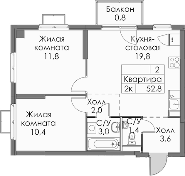 - Площадь52,8 м2