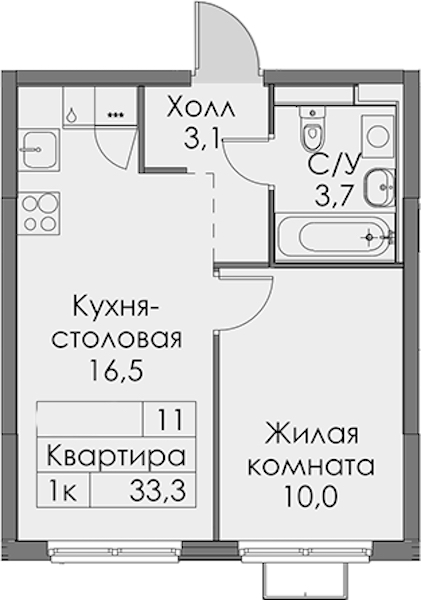 - Площадь33,3 м2