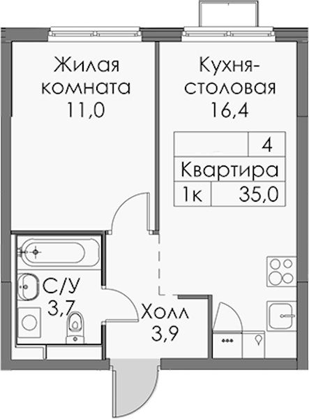 • Площадь кухни16,4 м2