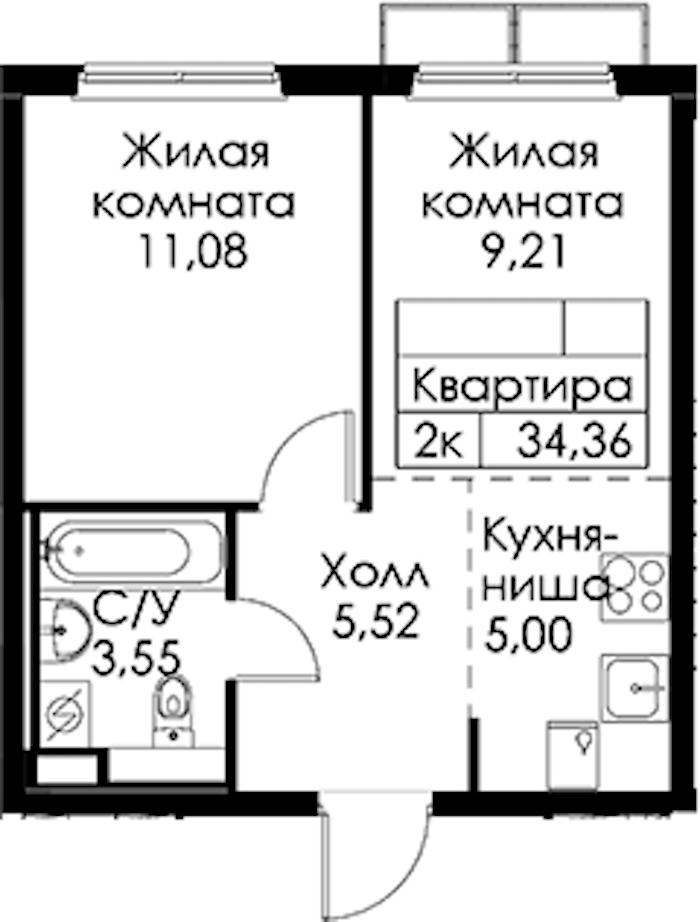 - Площадь34,36 м2