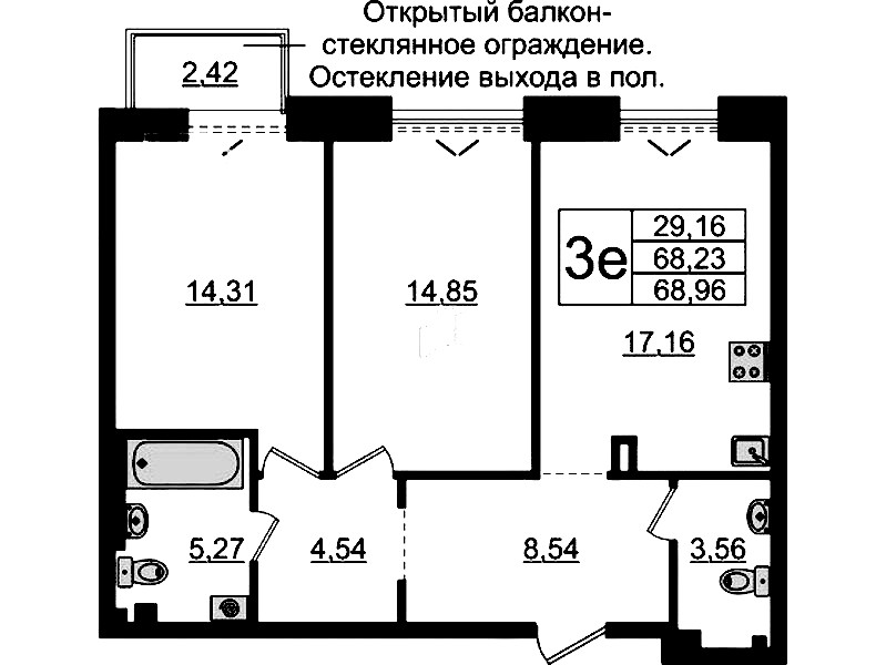 • Площадь68,23 м2