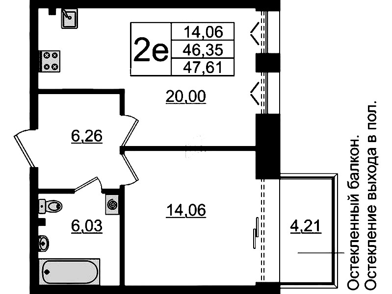 • Площадь46,35 м2