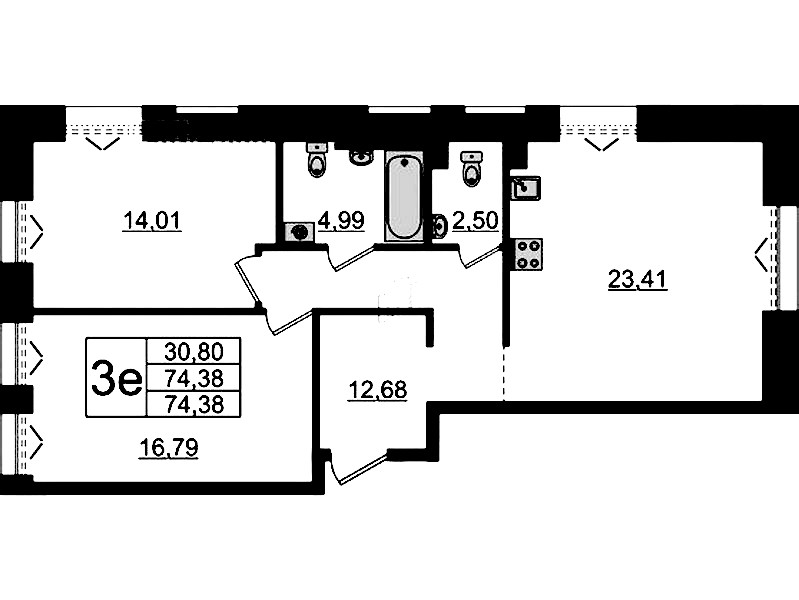 - Площадь74,38 м2