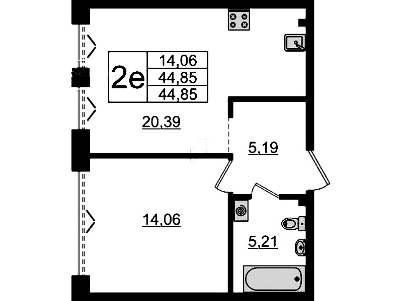 - Площадь44,85 м2