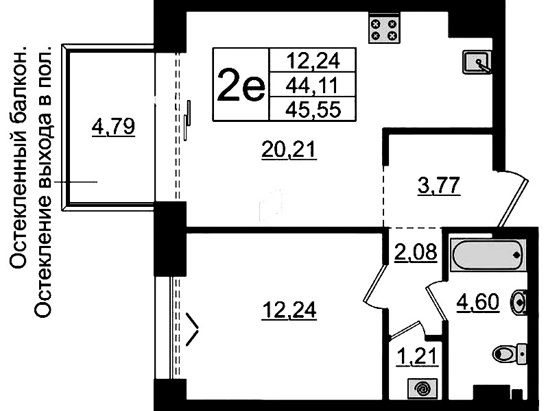 - Площадь44,11 м2