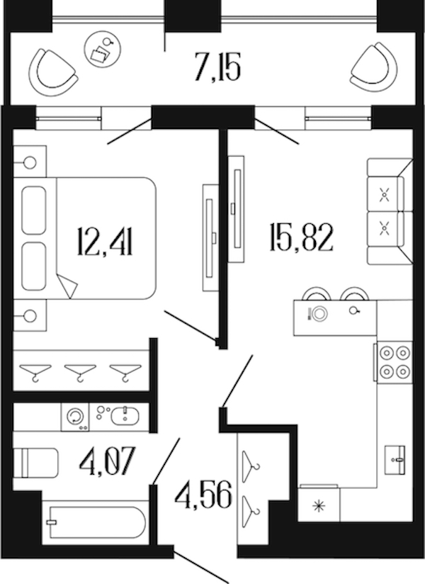 • Площадь кухни15,82 м2