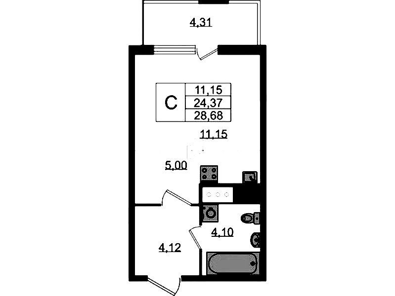 • Площадь24,37 м2