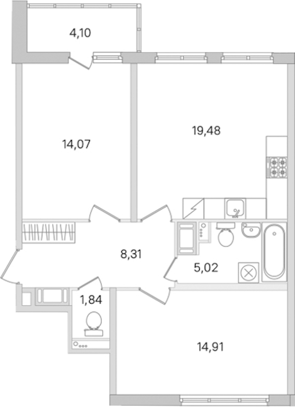 - Площадь кухни19,48 м2