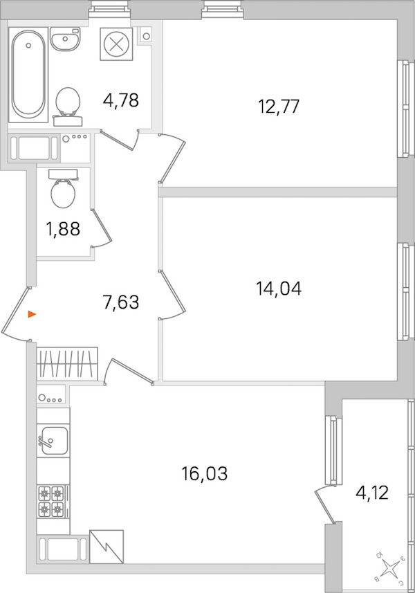 • Площадь кухни16,03 м2