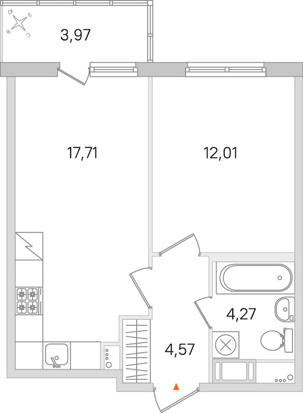 Однокомнатная квартира на 5-ом этаже 38,56 кв.м