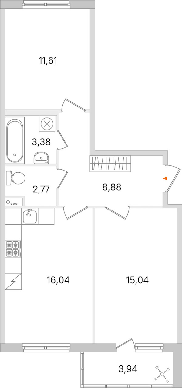• Площадь кухни16,04 м2