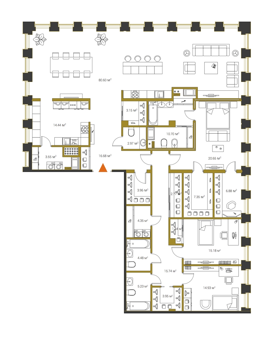Трёхкомнатная квартира на 20-ом этаже 246,3 кв.м