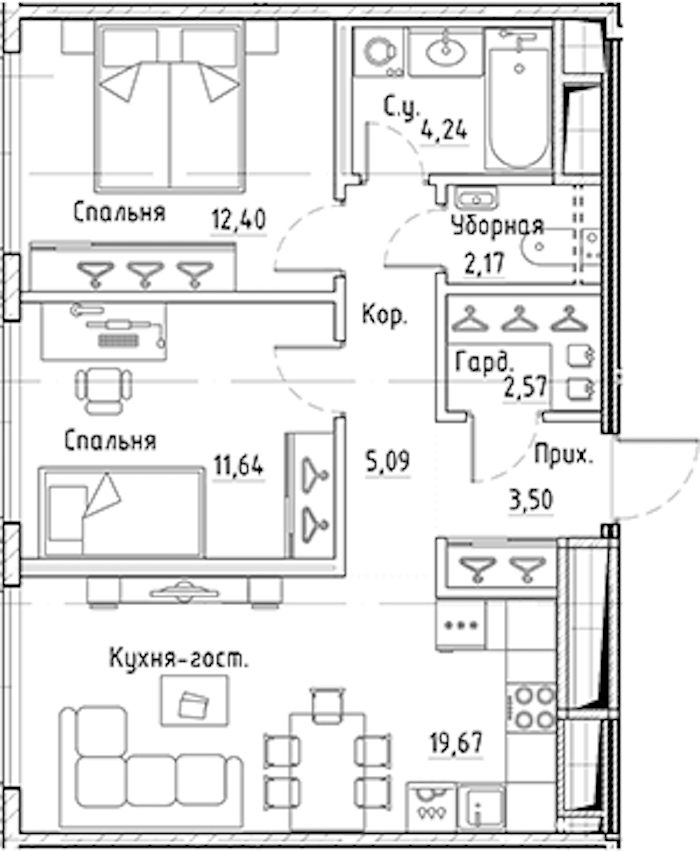 • Площадь кухни19,67 м2
