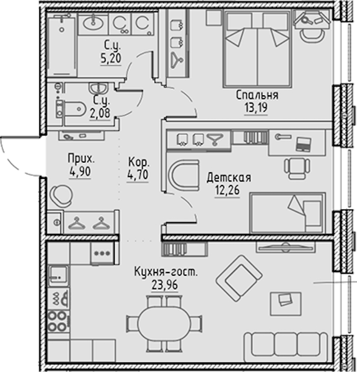 • Площадь кухни23,96 м2