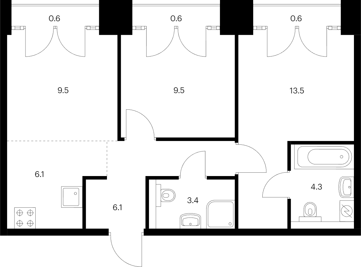 • Площадь54,2 м2