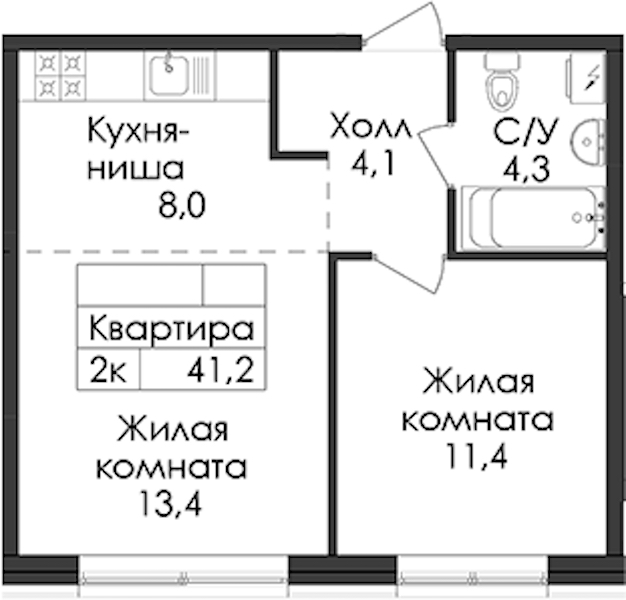 • Площадь41,2 м2