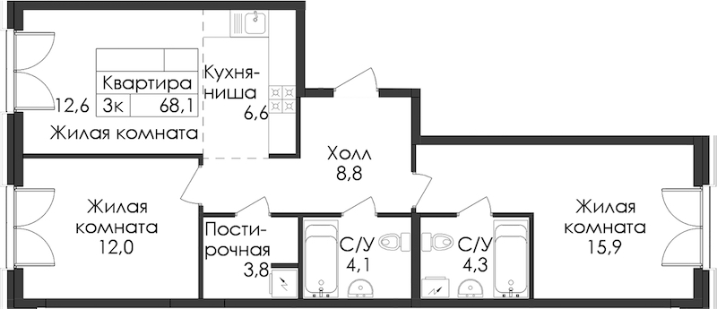 - Площадь68,1 м2