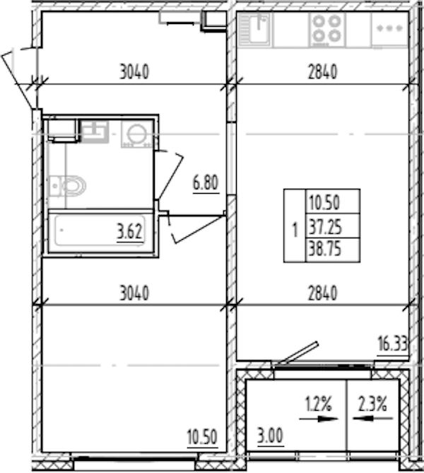 - Площадь38,75 м2