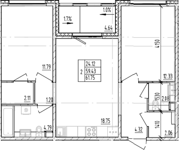 • Площадь61,75 м2