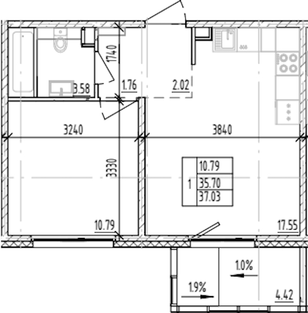 • Площадь37,03 м2