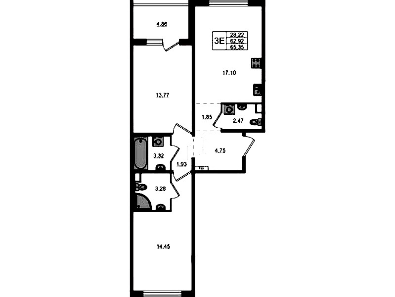 • Площадь65,35 м2