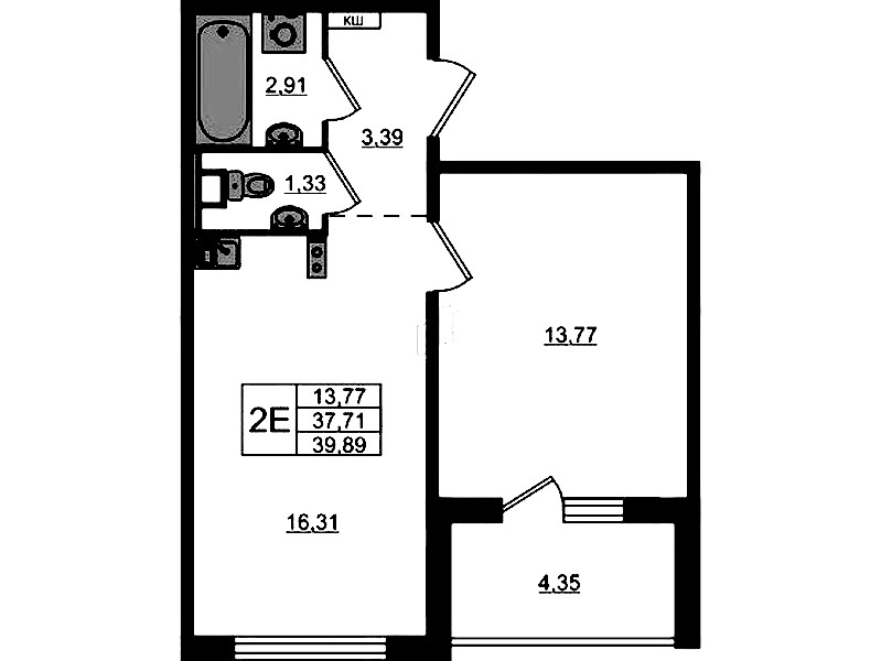 • Площадь39,89 м2