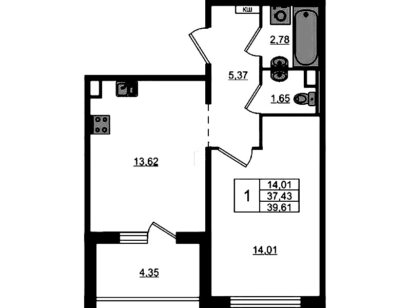 - Площадь39,61 м2