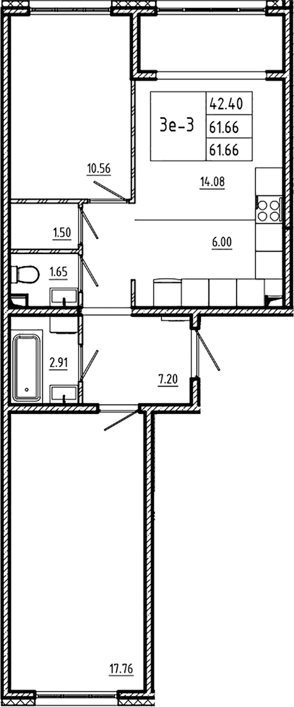 Двухкомнатная квартира на 1-ом этаже 61,66 кв.м