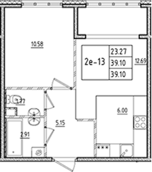 • Площадь39,1 м2