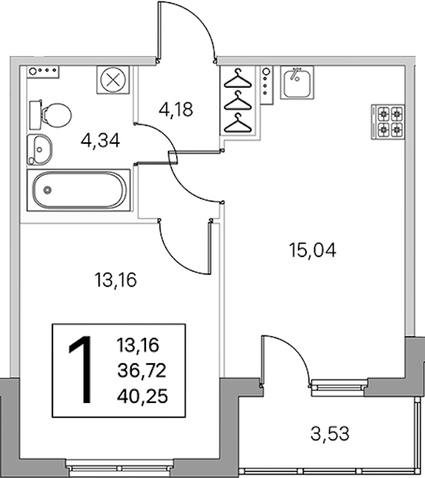 - Площадь кухни15,04 м2
