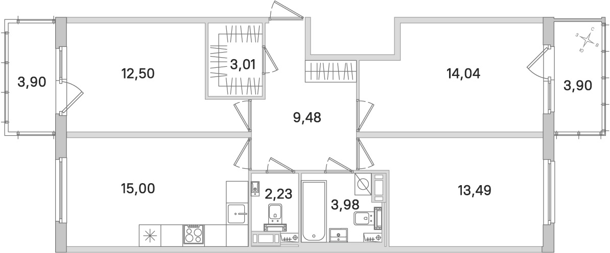 - Количество комнат3
