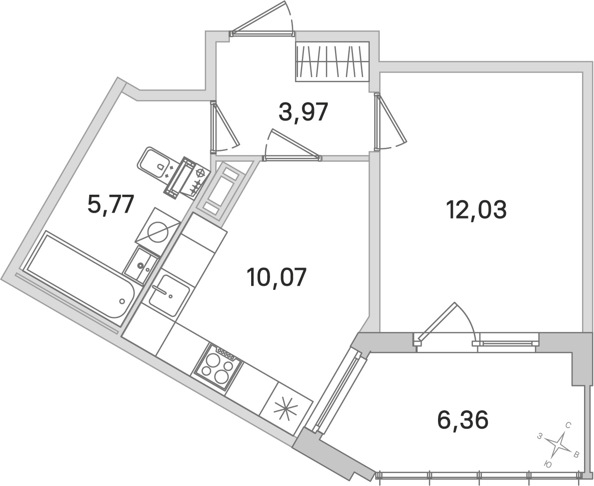 Однокомнатная квартира на 2-ом этаже 31,84 кв.м