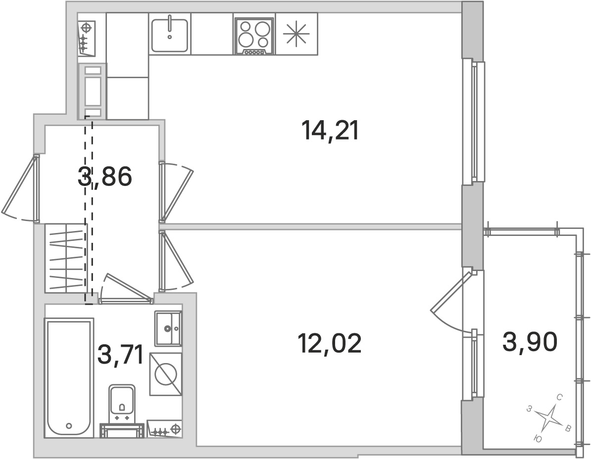 Однокомнатная квартира на 2-ом этаже 33,8 кв.м