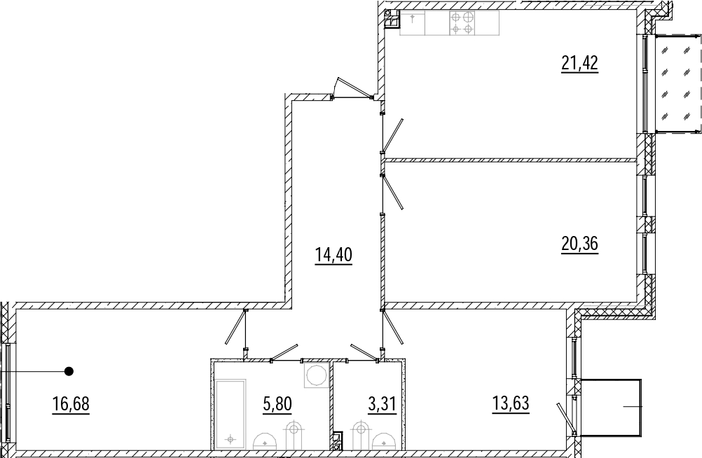 Трёхкомнатная квартира на 2-ом этаже 96,12 кв.м