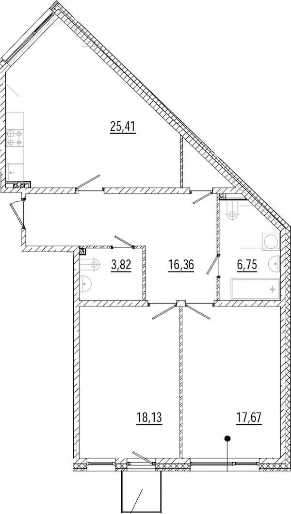 - Площадь кухни25,41 м2