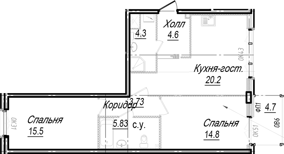 - Площадь кухни20,2 м2