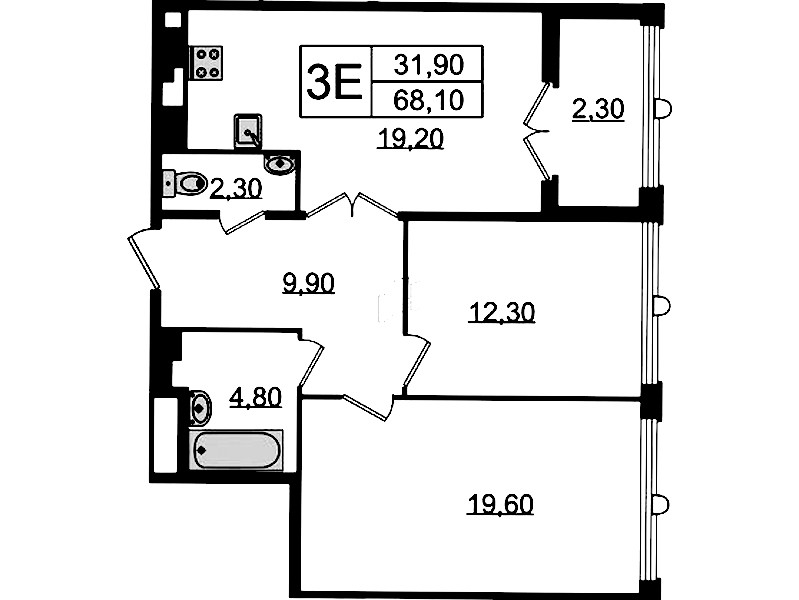 - Площадь68,1 м2