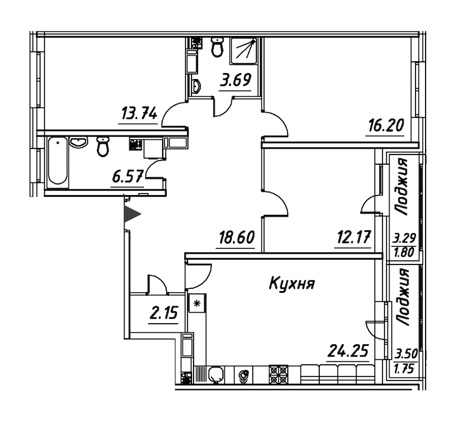 - Площадь кухни24,25 м2