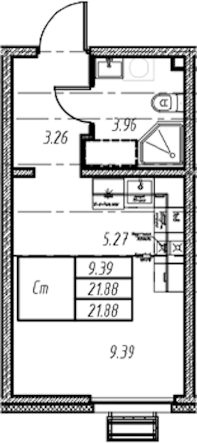 Квартира-студия на 2-ом этаже 21,88 кв.м