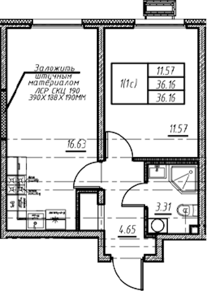 - Площадь36,16 м2