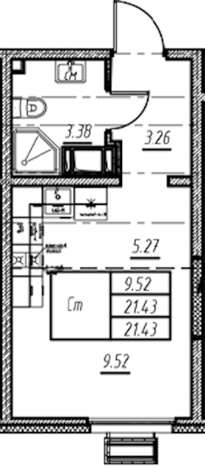 Квартира-студия на 5-ом этаже 21,43 кв.м