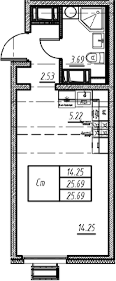 Квартира-студия на 5-ом этаже 25,69 кв.м