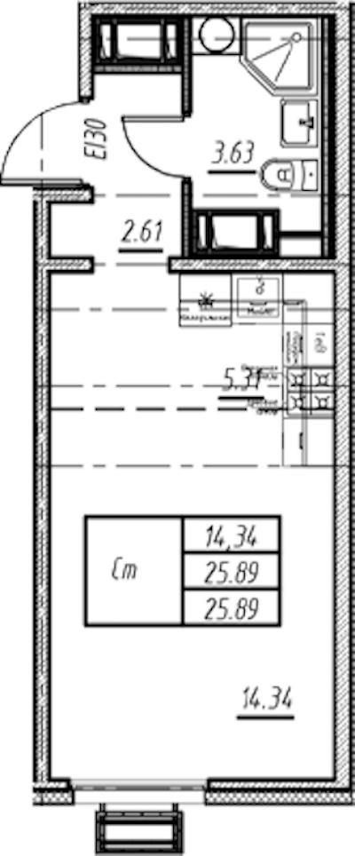 Квартира-студия на 11-ом этаже 25,89 кв.м